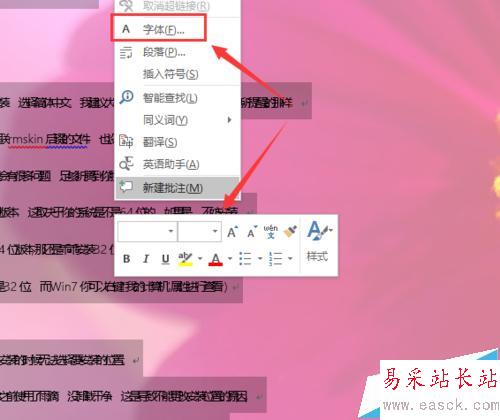 3、然后我們點擊鼠標右鍵,選擇字體,這里我們也可以直接在小圖標哪里更改字體。