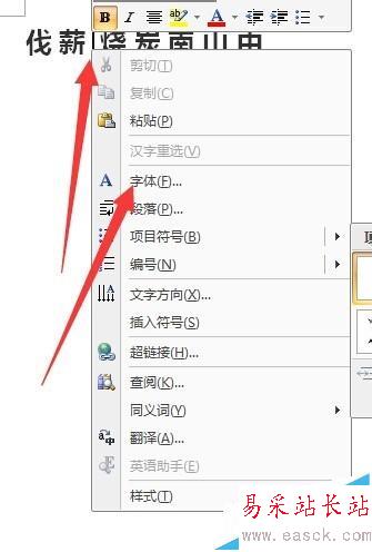 4、在薪后放入光標(biāo),右擊出現(xiàn)一個(gè)下拉菜單。點(diǎn)擊字體。