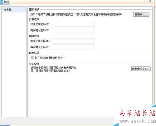 再次確認(rèn)“打開權(quán)限密碼”和“修改權(quán)限密碼”。按“確定”退出“保存”。