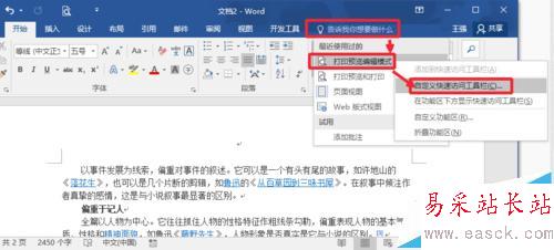 5、我們可以在最近使用過的命令上面點擊右鍵,然后選擇自定義快速訪問工具欄。