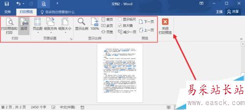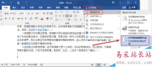 3、當然我們使用比較多的是打印預覽編輯模式,我們可以如圖打開。