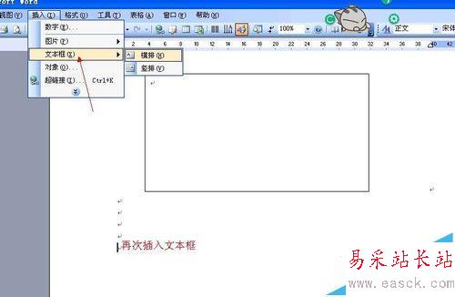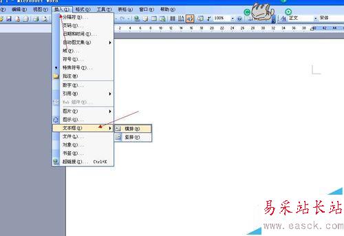 2、進入到word中以后,點擊上方菜單欄的“插入”,出現的列表中有一個“文本框”點擊,出現了“橫豎排”,自己選擇,如下圖: