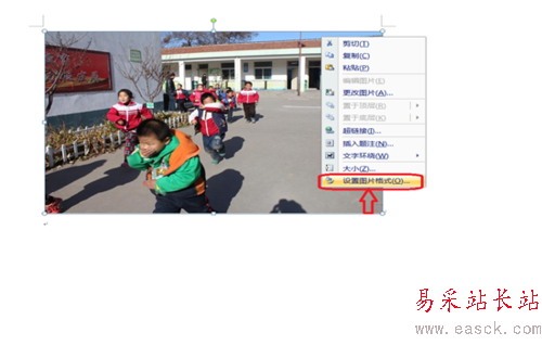 3、鼠標指向圖片,單擊右鍵,找到設置圖片格式,單擊一下,可以對圖片進行設置了,設置圖片的線條顏色和圖片的顏色了。