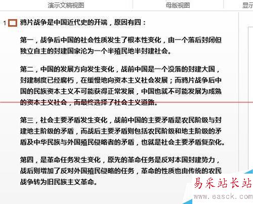 5、粘貼之后,文字的格式和剛才的一樣的,現(xiàn)在就要分開成多個幻燈片。如果你想在哪里將它分開成一個幻燈片,那么就將你光標(biāo)移動到那個字的后面,然后徐敲擊回車鍵就分開了。