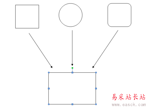 2、選中圖形,圖形變成編輯狀態,按住左鍵,將圖形放置到合適的位置上。全部圖形都這樣放置。