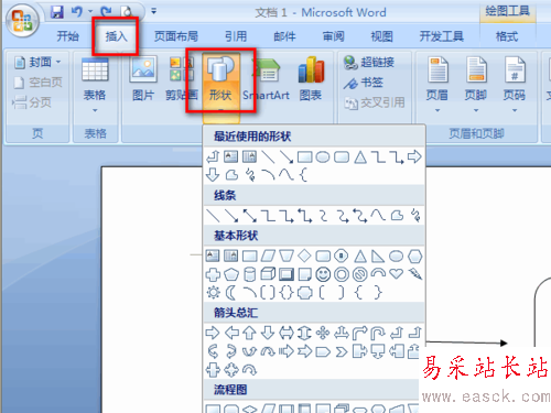1、選擇功能區中的“插入”,在“插圖”功能中選擇“形狀”,選擇一個圖形,在文檔空白處點擊鼠標左鍵,圖形就被放置到該處。其它圖形也這樣選擇。