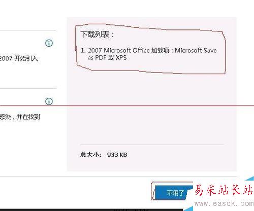 3、步驟2后,彈出圖示的界面,選擇”訪問用于安裝和使用microsoft另存為pdf或xps加載項“,圖中畫紅線的選項。