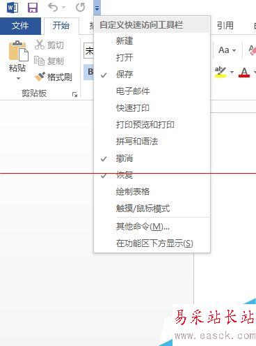 1、打開word,看到最上角的快速訪問工具欄。默認有保存、撤銷、恢復三個。