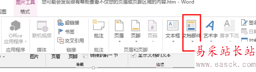 3. 在的插入組中,選擇文檔部件>字段和域對話框中打開。