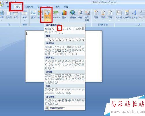 4、單擊“插入”--“插圖”--“形狀”--“矩形”圖形,在頁面繪制出一個和紙張大小一模一樣的矩形。