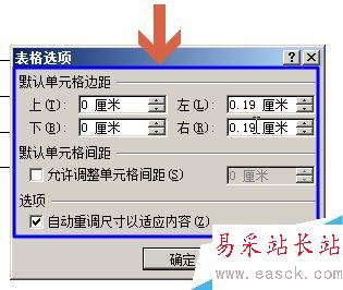 5、在打開的界面即可設置單元格邊距的各種選項。