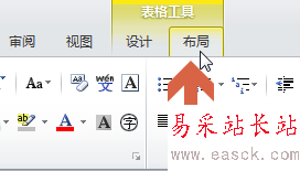 2、點擊表格后,word2010菜單中會出現“布局 ”選項卡。此時點擊“布局 ”選項卡。