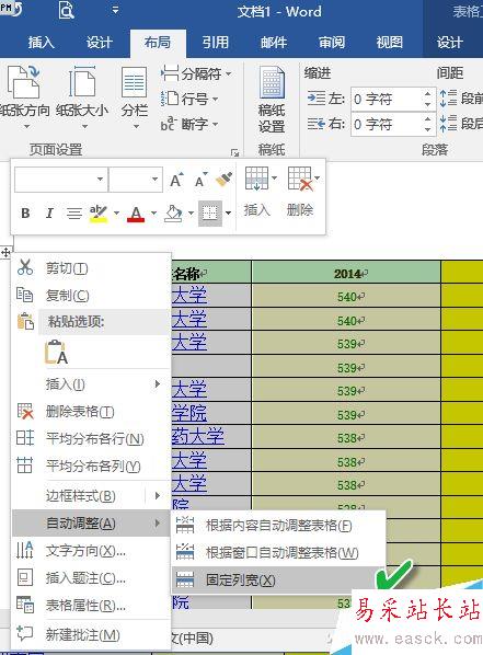 使用上述方法,雖然表格內容全得到了顯示,但也許你會發現,表格的列寬被壓縮了。這是因為Word版面寬度小于原來Excel表格寬度造成的。為此,可以先在版面設置中調整版面寬度,或者可以將紙張縱橫倒置一下,然后在表格右鍵菜單中執行“自動調整→固定列寬”命令,對表格的自動調整屬性進行限制。如不合適,可再行通過自定義重設版面寬度,直至合適為止。