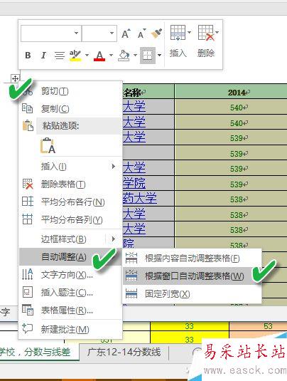 要想解決這個問題,請不要急著手動拖拽表格,那樣可能會亂上加亂。而是首先需要選中該表格,右擊鼠標,執行“自動調整→根據窗口調整表格”命令,可以讓表格全部顯示。