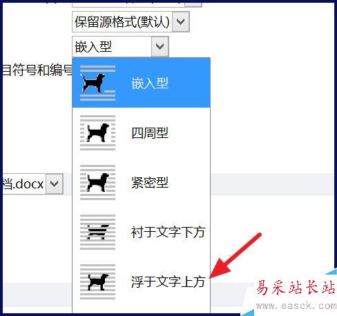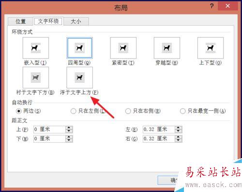 4、選擇【浮于文字上方】,再點(diǎn)擊確定即可