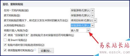4、找到【剪切、復(fù)制和粘貼】下的【將圖片插入/粘貼為】