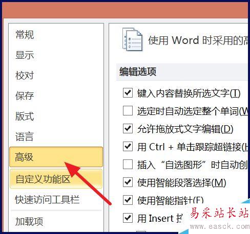 在選項(xiàng)窗口中,點(diǎn)擊【高級(jí)】