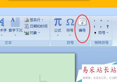 2、選中數字,在插入選項卡最右側,單擊符號組中的編號按鈕