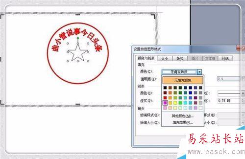 3、公章的文字用藝術字來制作。 填充顏色和線條顏色都用紅色,并設成無陰影。