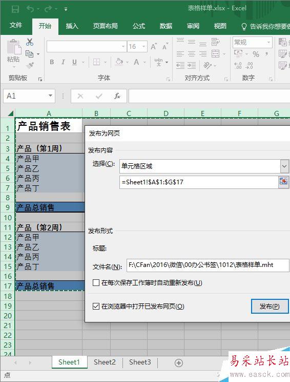 點擊“發布”后,如果工作簿中有多個表格,在打開的發布窗口中可以進行選擇,也可以指定表格的單元格區域。此處還可以看出這一方法的更大優勢,就是它能一次性將整個工作簿的所有表格全部導出。