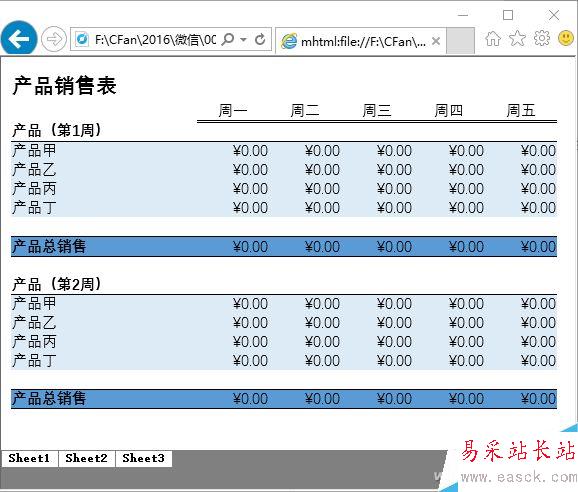 不過需要注意的是,上述產生的網頁文件,需要在微軟IE瀏覽器中才能正常打開。其他基于Chrome之類的瀏覽器,可能無法正常顯示出表格。