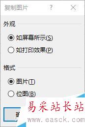 這時將會彈出一個對話框,如果選擇“如屏幕所示”效果,將和Ctrl+C的復制效果相同。