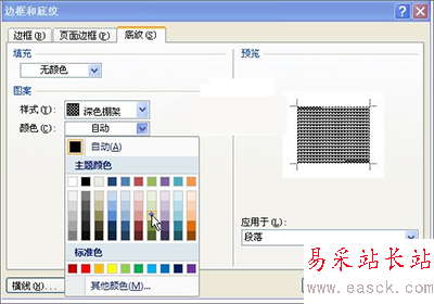 3、然后點擊顏色后面的小三角,彈出下拉菜單,為底紋選擇一款顏色;