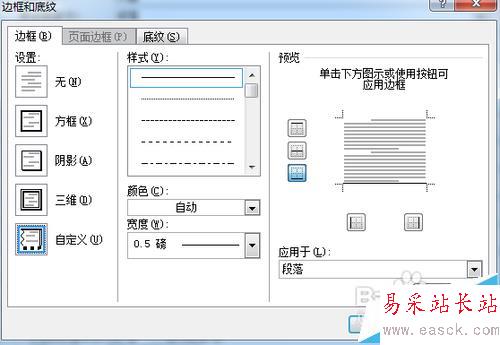 5、選擇"設置"里的“無”,選擇右下角的應用于“段落”,確定完成