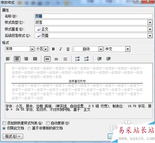 3、選擇應用樣式對話欄里的“修改”出現“修改樣式”對話框