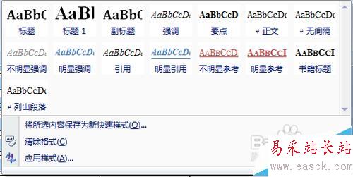 2、找到“開始”里的“樣式”欄,點擊樣式下面的箭頭,選擇“應用樣式”
