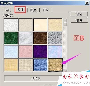 點“紋理”這里,點選“編織物”紋理;再點確定;