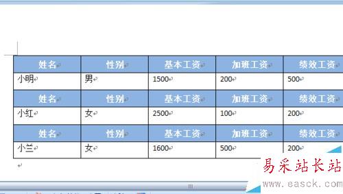 人力資源統計工資一般使用excel制作,但是工資條一般是在word里面制作,下面分享一個比較簡單的方法。