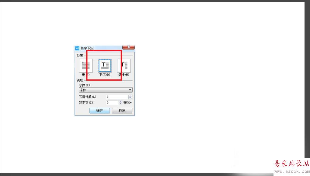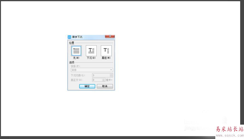 5、選擇“首字下沉”效果,也可以選擇“懸掛”效果