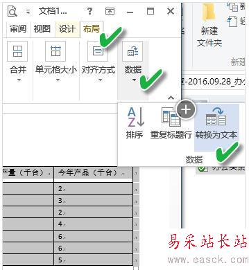 在軟件頂端的菜單欄上點(diǎn)擊“布局”選項(xiàng)卡,在布局選項(xiàng)中,點(diǎn)擊“數(shù)據(jù)”一項(xiàng)。在展開的下拉菜單中,選擇“轉(zhuǎn)換為文本”。