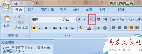 3、在“開始”選項框中,點擊“清楚格式”,就是圖中紅框標注的圖標