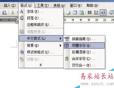 然后,在文檔菜單欄中順序點:格式--中文版式--帶圈字符;