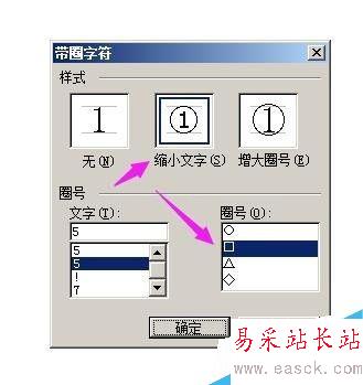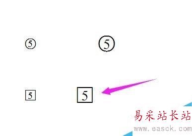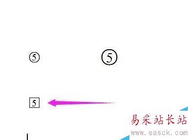 “圈號”這里,點選方框,點確定后,數字“5”被圈上方框,如圖的樣式;