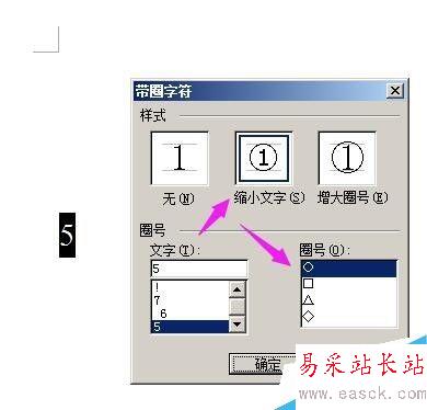 3、在設置框的“樣式”中點選“增大圈號”,點確定后,數字“5”被圈上圓圈,如圖的樣式;