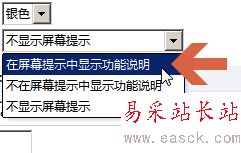 5、點擊后,在彈出菜單中點選“在屏幕提示中顯示功能說明”。再點擊“確定”按鈕即可。