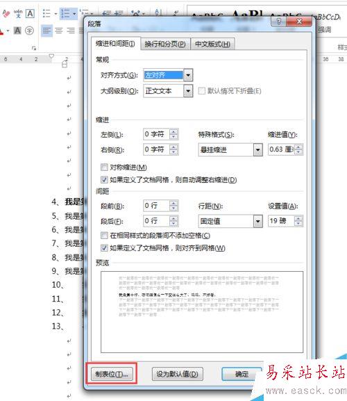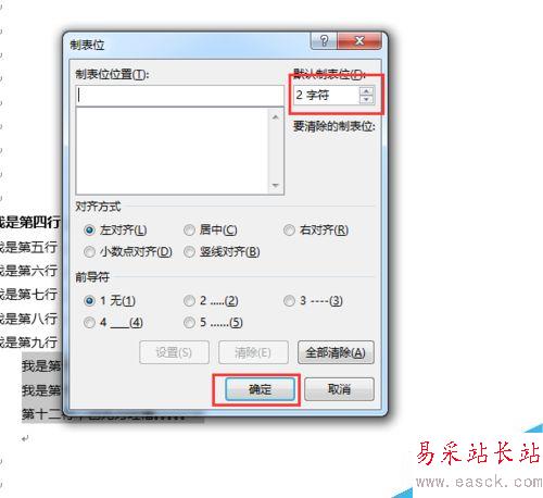 將“默認制表位”從原本的“2字符”修改為“0字符”,點擊確定