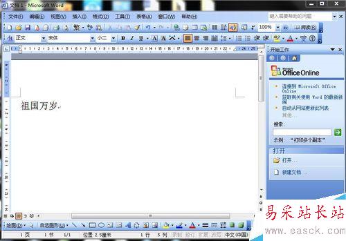 2、在空白文檔中,我們可以輸入一些文字,以作為轉換的內容演示,比如,國慶節要到了,我們輸入“祖國萬歲”。