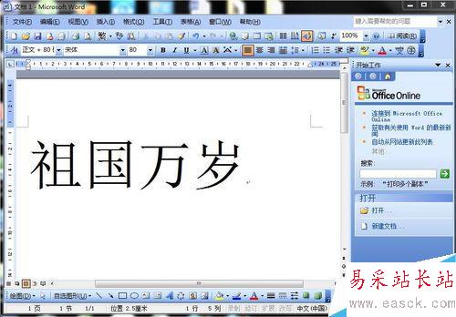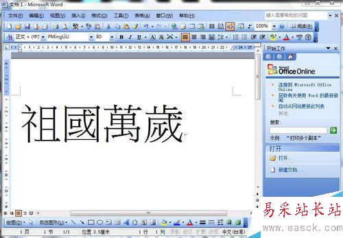 6、點擊這個“繁”字以后,我們看到,原來的“祖國萬歲”字樣,變成了繁體字“祖國萬歲”。設置成功。