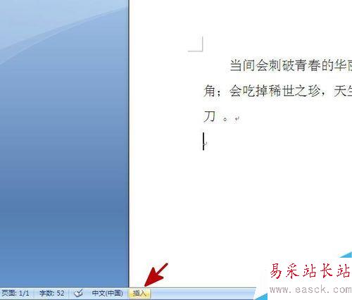 6、這時(shí)候在輸入文字就是插入狀態(tài)了,恢復(fù)成正常的編輯狀態(tài)。