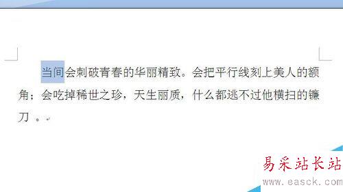 1、我們經(jīng)常會(huì)遇到這樣一種情況,打開(kāi)一個(gè)文檔,如圖所示,這段話開(kāi)頭想修改,在“時(shí)間”面前加個(gè)“當(dāng)”字,會(huì)把光標(biāo)挪到“時(shí)間”前面,準(zhǔn)備輸入。
