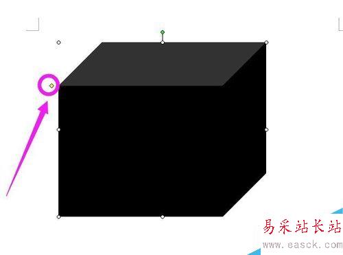 立方體的四周有控制點,在左上方有一個黃色的控制點。光標點住控制點不放手,拉動控制點,調節立方體的大小;