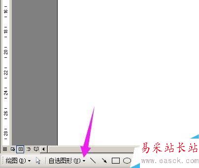1、新建文檔,在文檔的繪圖工具欄中點“自選圖形”右側的三角形圖標。