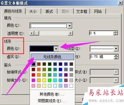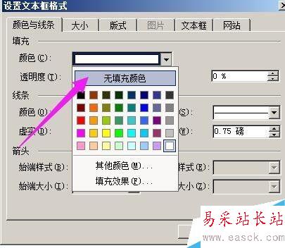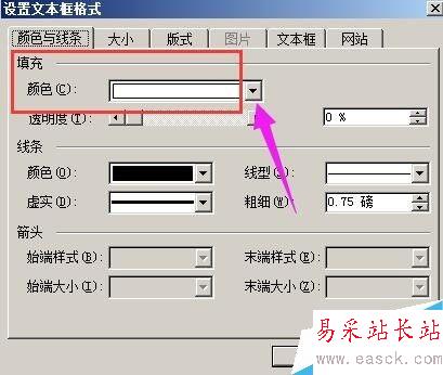 6、點“設置文本框格式”后,彈出文本框的設置框。