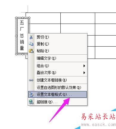 光標點下文本框邊框,表示選中文本框,然后,點下鼠標右鍵,彈出菜單中點“設置文本框格式”。