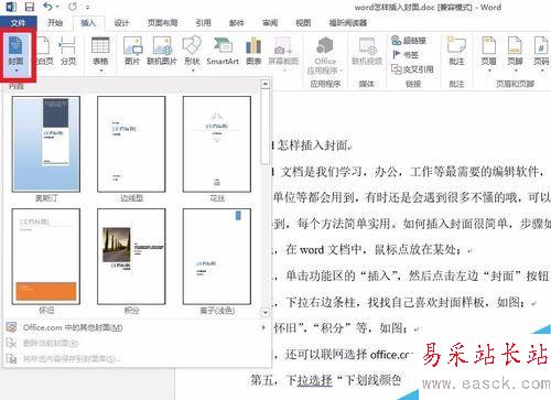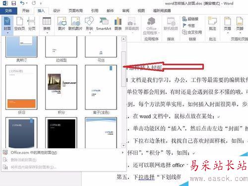6、還可以聯網選擇office.com中其它封面,如圖;