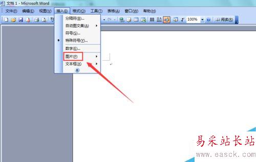 3、點擊插入菜單后,進入插入菜單的子級菜單,在其子級菜單里找到圖片選項,如圖所示: